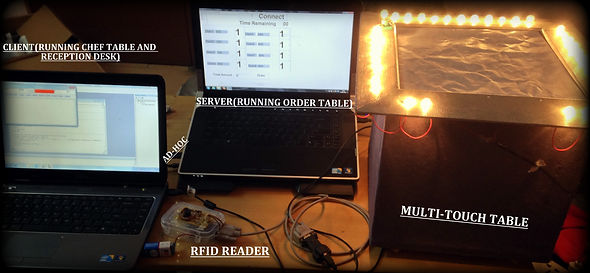 The multi-touch table constructed was a camera based multi-touch device designed using front-side illumination technique. Card associated with a RFID tag was used, priced to a specific amount which was issued to the customer at the reception desk. Each order table at the restaurant would have a multi-touch device along with the RFID reader. Customer was able to interact with the multi-touch device by showing his RFID card and placing an order by selecting from the menu displayed on the order table.